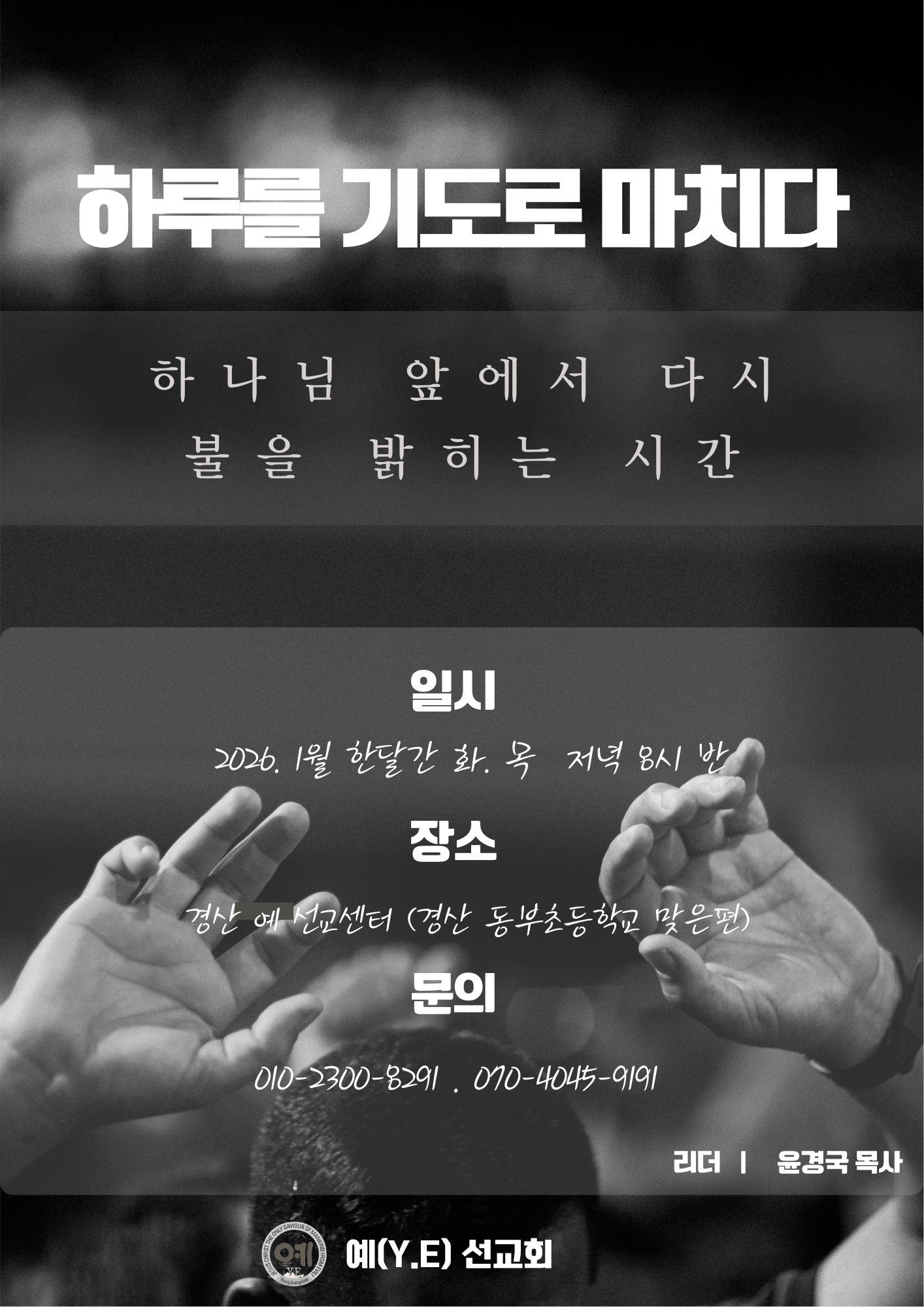 공지 예 신년 기도 모임 안내 운영자 2025-12-29 추천 0 댓글 0 조회 154 http://www.ye91.com/bbs/bbsView/133/6593077 첨부파일 (0) 0
