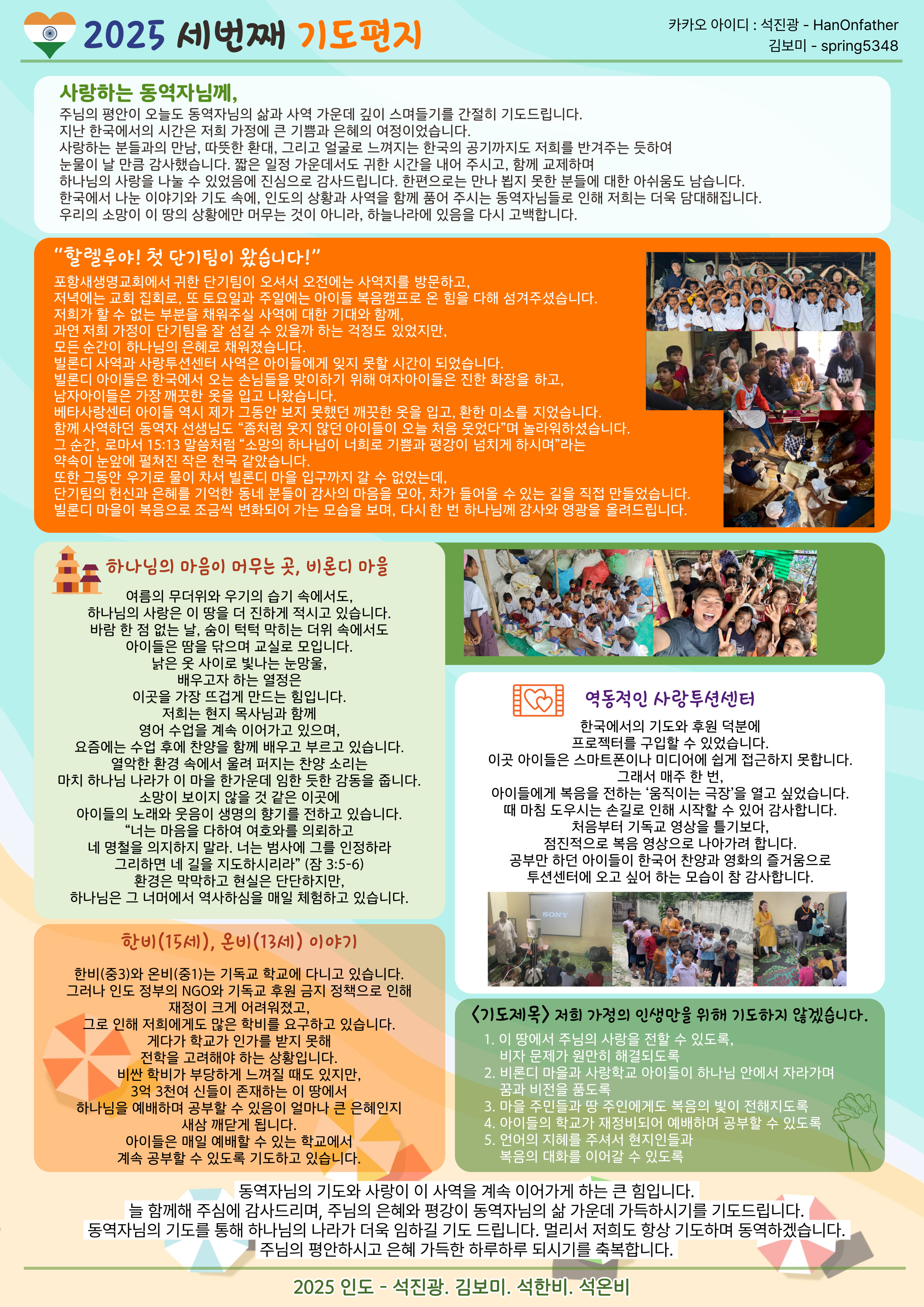 | 이전글 | 최철호선교사 스리랑카 선교지 소식 | 운영자 | 2008.11.07 | 0 | 2426 |
