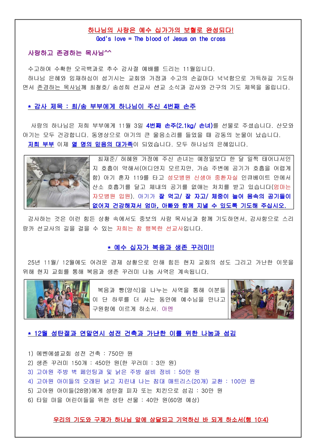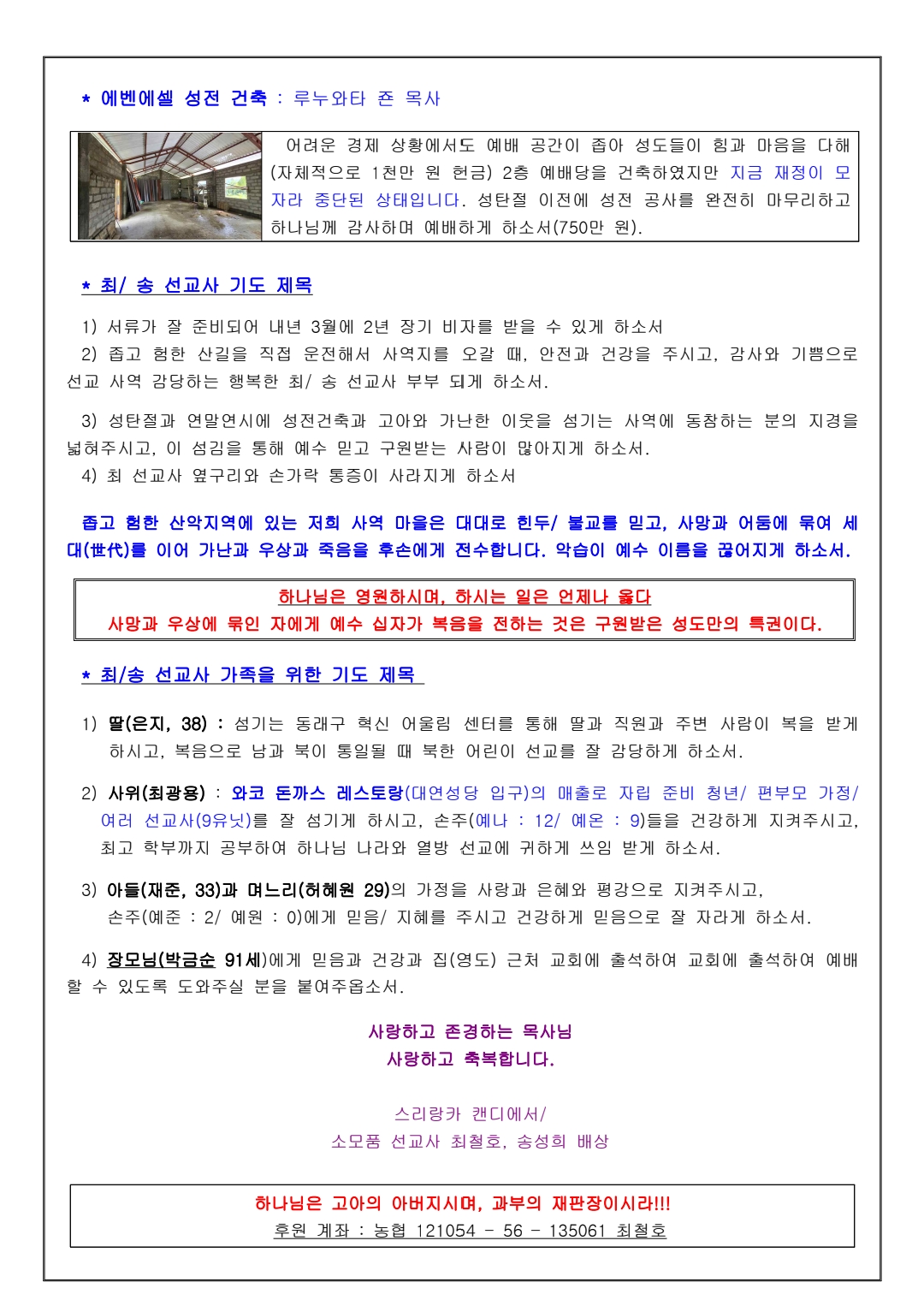 | 이전글 | 오흥복 선교사 필리핀 소식 | 운영자 | 2010.11.03 | 0 | 2371 |
